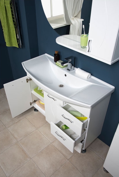 Тумба под раковину Aquanet Моника 105 186772 с выдвижными ящиками и распашными дверцами. Элегантный стиль с мягкими волнообразными формами, функциональность и качество характеризуют коллекцию Моника. Тумба предназначена для использования в ванных комнатах с повышенной влажностью. Соответствует стандартам безопасности. Благодаря механизму доводчиков ящики и дверцы закрываются бесшумно и легко.