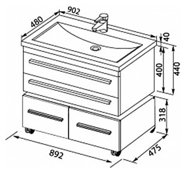 - Размеры тумбы (ШхГхВ): 89,2х47,5х40 см.