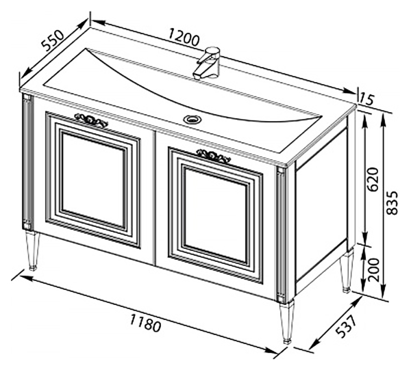 - Размеры тумбы (ШхГхВ): 118х53,7х82 см.