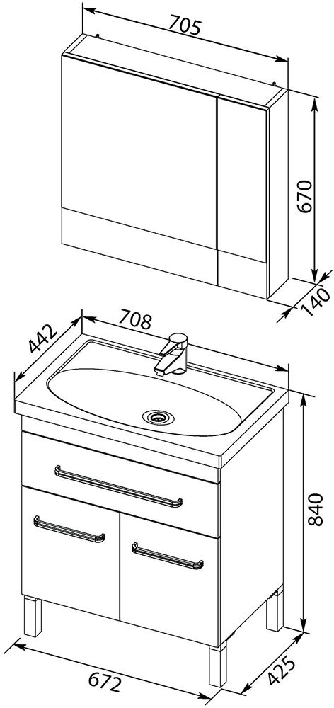 - Габариты изделия (ШxВxГ): 67,2x84x42,5 см.