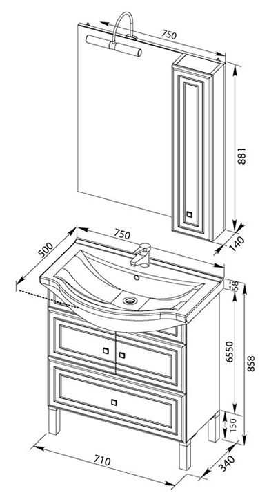 Тумба под раковину Aquanet Стайл 75 181500. Распашные дверцы, нижний ящик.