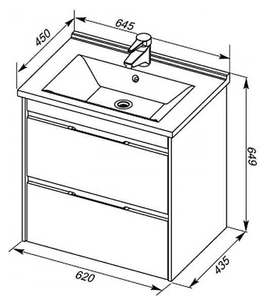 - Размеры тумбы (ШхГхВ): 62х43,5х64,9 см.