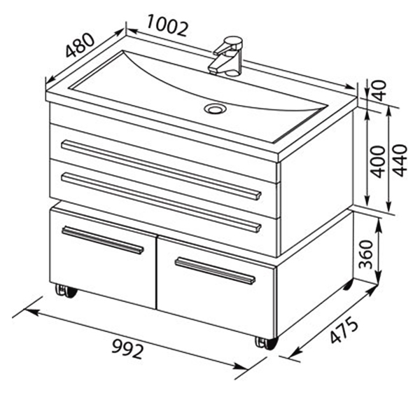- Размеры тумбы (ШхГхВ): 99,2х47,5х40 см.