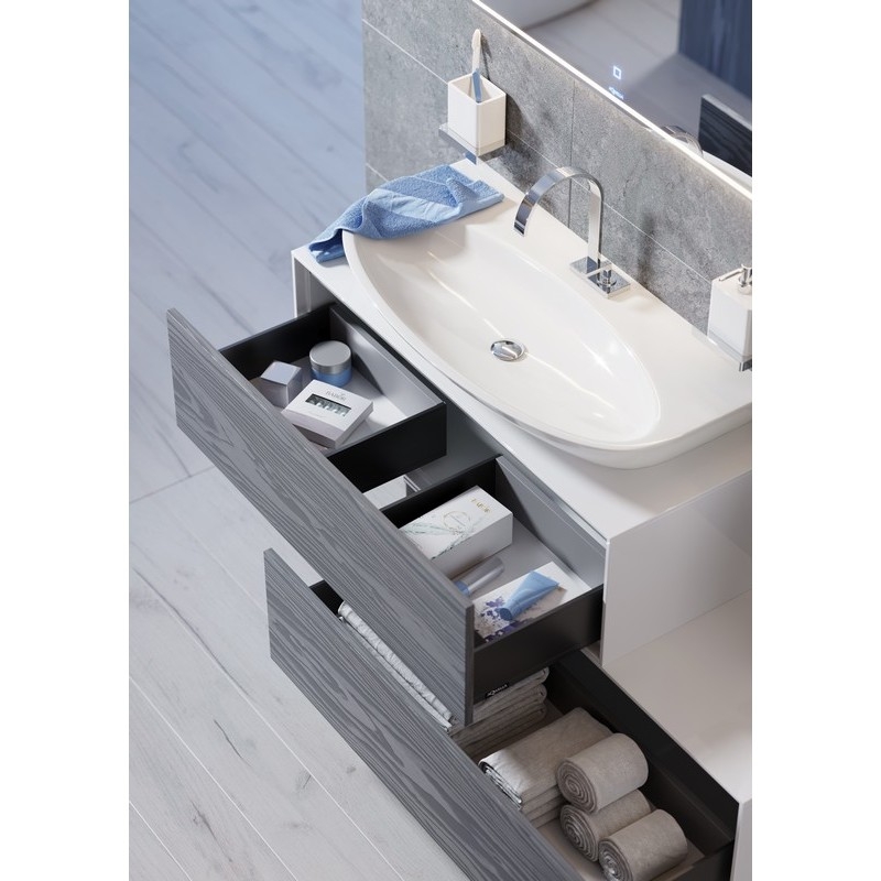 Механизм открывания отделения push-to-open: никаких выпирающих ручек. Открыть шкаф можно посредством легкого нажатия на крышку фасада.