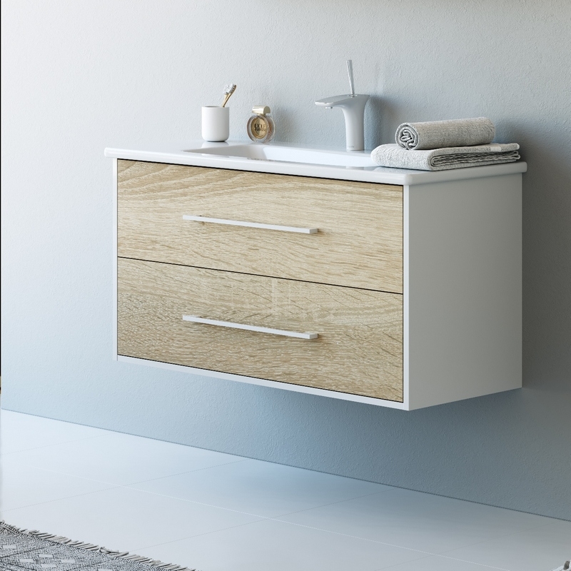 Тумба под раковину Aqwella 5 Stars Маями 80 Mai.01.08 подвесная Дуб сонома Белая