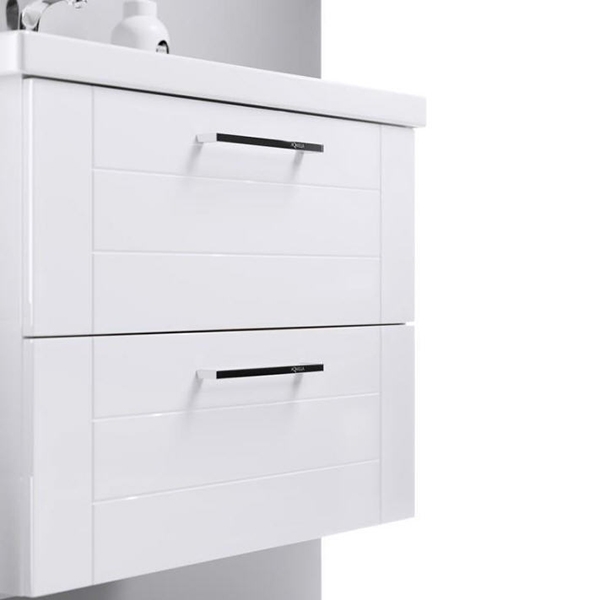 Подвесная тумба под раковину Aqwella Манчестер 80 MAN01082 с двумя выдвижными ящиками с хромированными ручками, для использования в ванных комнатах с повышенной влажностью.