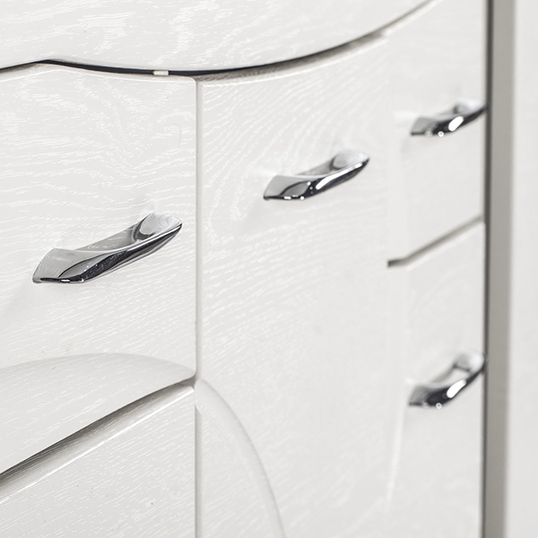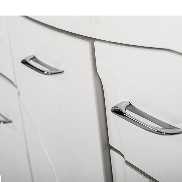- Материал корпуса - МДФ, материал фасада - ДСП. Покрытие белой пленкой с фактурной поверхностью.