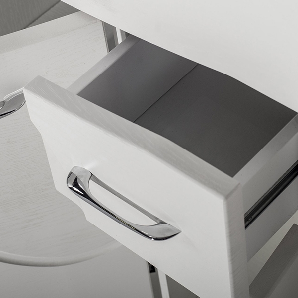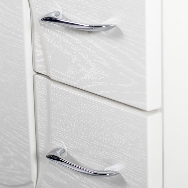 - Материал корпуса - МДФ, материал фасада - ДСП. Покрытие белой пленкой с фактурной поверхностью.