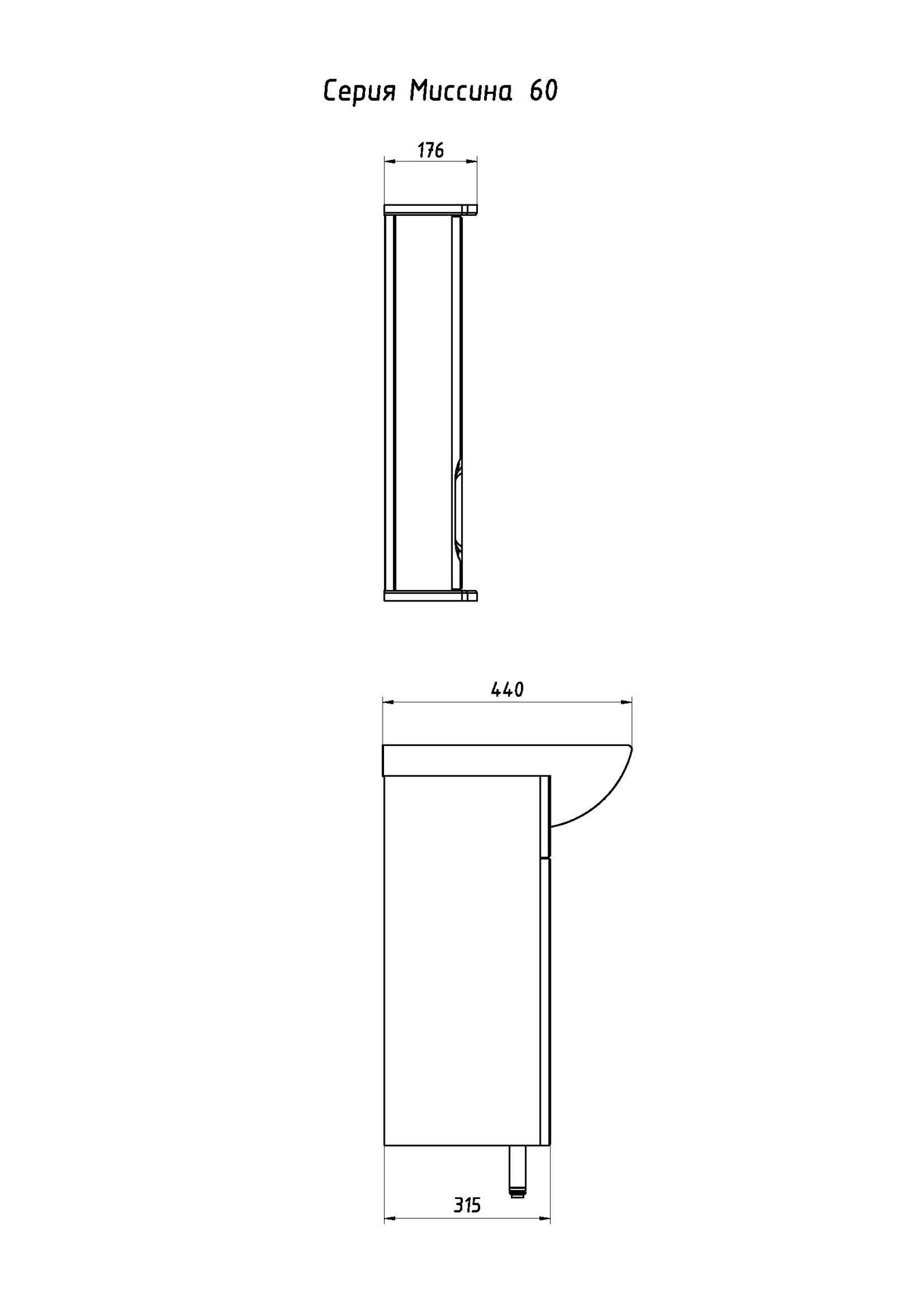 Тумба под раковину АСБ-мебель Мессина 60 9891 - комбинированная тумба с двумя распашными дверцами и одним выдвижным ящиком. Выполнена в современном стиле и дополнит большинство интерьеров ванных комнат. Предназначена для использования в ванных комнатах с повышенной влажностью.
