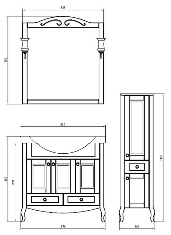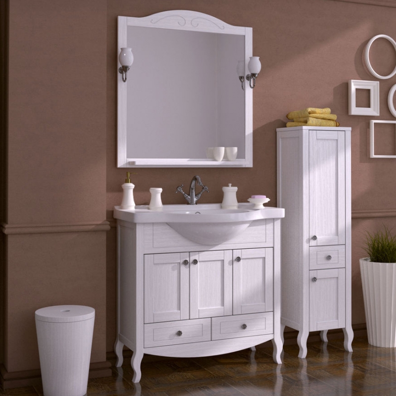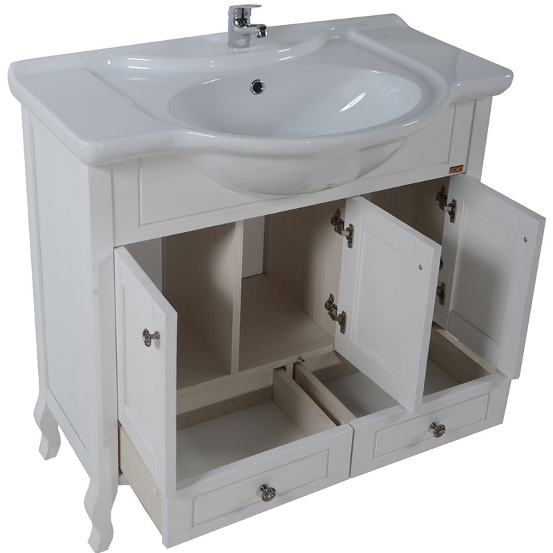 Тумба под раковину ASB-Woodline Флоренция 85 Белая с патиной