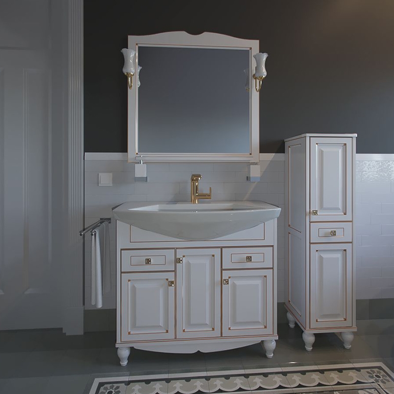 Тумба под раковину ASB-Woodline Верона 90 Белый с золотой патиной