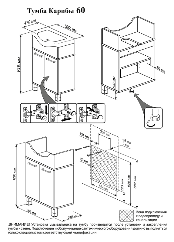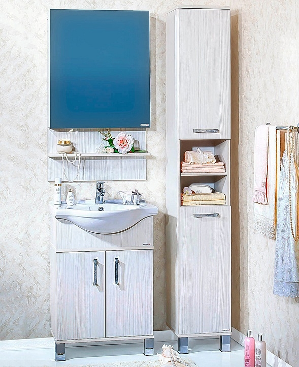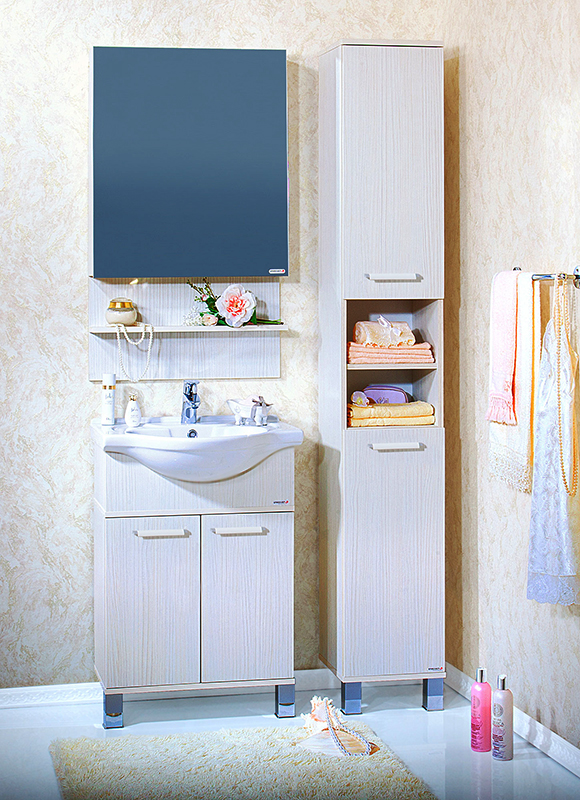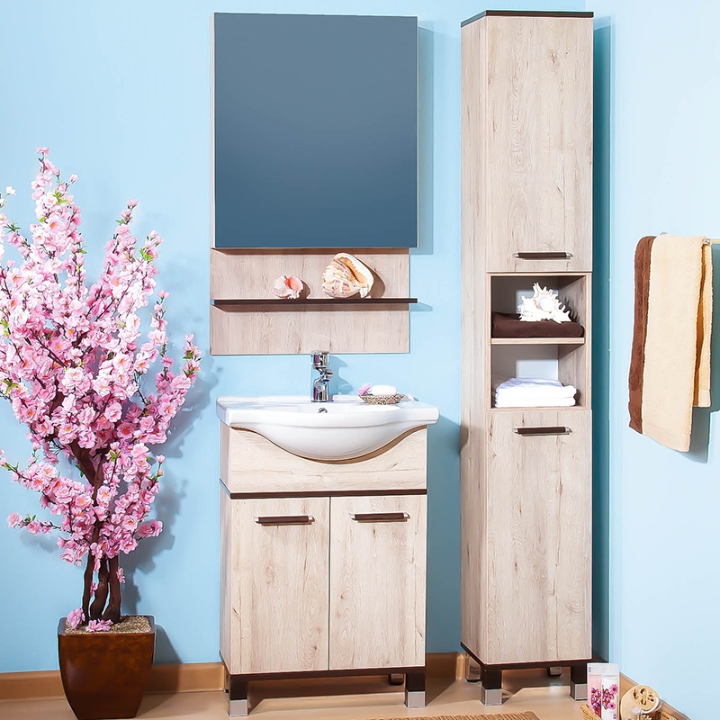 Тумба под раковину Бриклаер Карибы 60 на ножках, с двумя распашными дверцами. Для использования в ванных комнатах с повышенной влажностью.