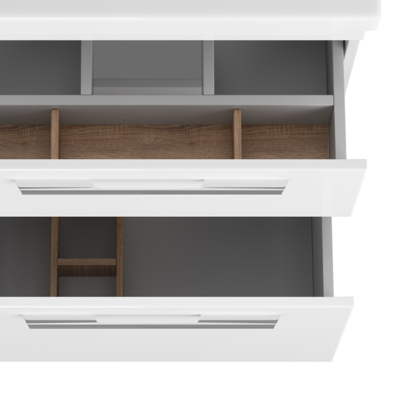 Тумба оснащена механизмами плавного и бесшумного закрытия Hettich, направляющими скрытого монтажа.