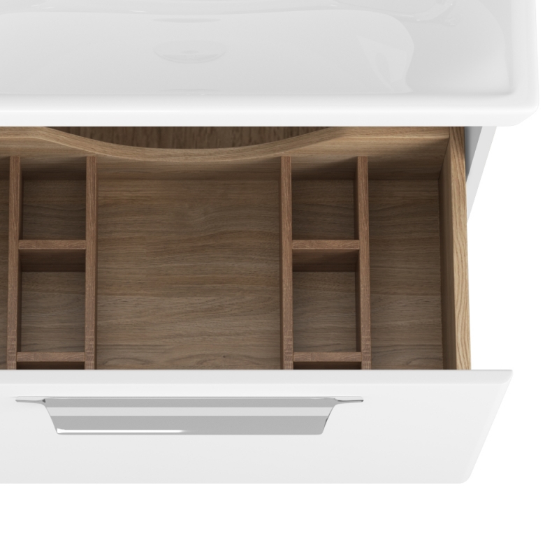Тумба под раковину Diborg Lande 100 77.5217 подвесная наполнит дом теплом и комфортом, сохраняя лаконичную форму, а длительный срок службы, немецкие технологии, выдвижные механизмы с плавным закрыванием Hettich, дают уверенность в том, уют и комфорт коллекции Lande будут служить вам долгие годы.