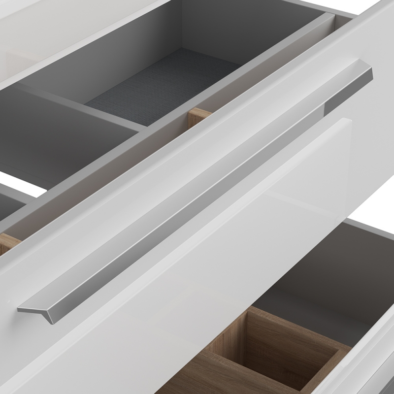 Тумба оснащена механизмами плавного и бесшумного закрытия Hettich, направляющими скрытого монтажа.