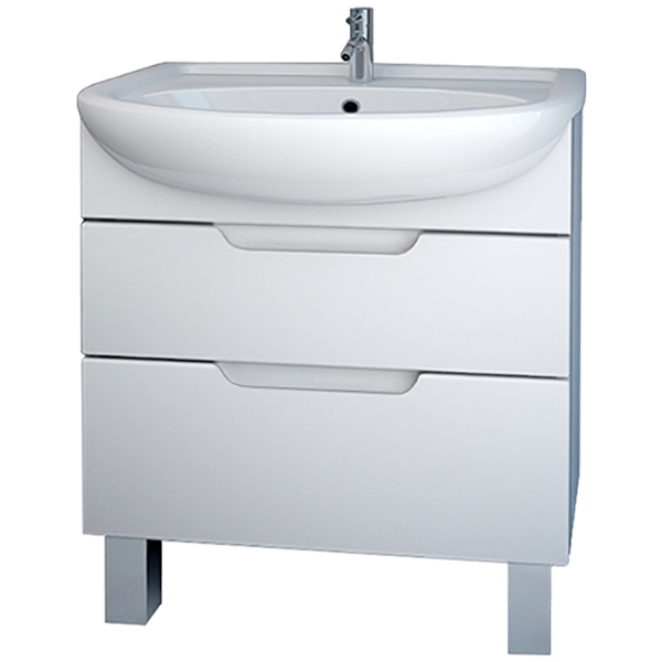 Фасад тумбы выполнен из влагостойкого МДФ и покрыт глянцевой белой эмалью, корпус из МДФ.
