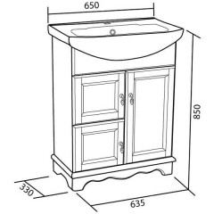 Габариты корпуса тумбы (ШхВхД): 33 х 80 х 65 см.