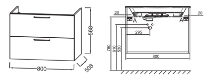 - Размеры (ШхГхВ): 80х50,8х56,8 см.