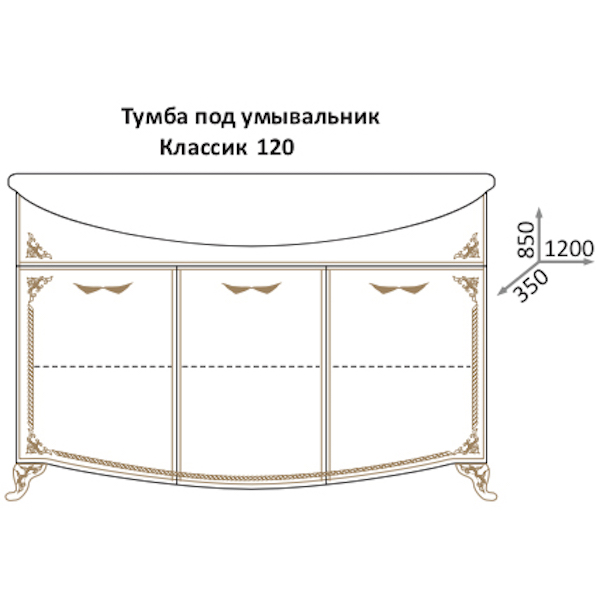 Тумба под раковину Какса-А Классик-Д 120 004241 Бежевая Золото