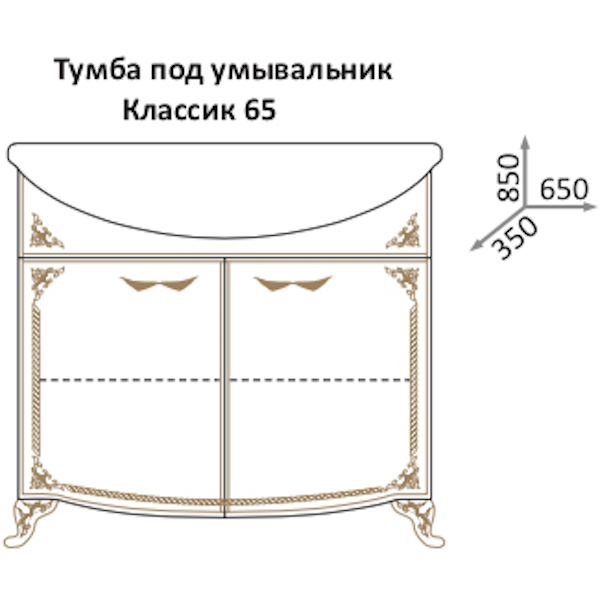 Тумба под раковину Какса-А Классик-Д 65 004237 Бежевая Золото