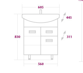 Корпус тумбы выполнен из влагостойкого ЛДСП. Фасад из влагостойкого МДФ. Это позволяет продлить срок службы тумбы.