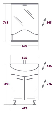 - Отделение: две распашные дверцы.