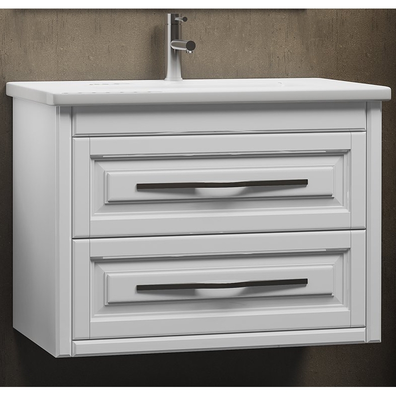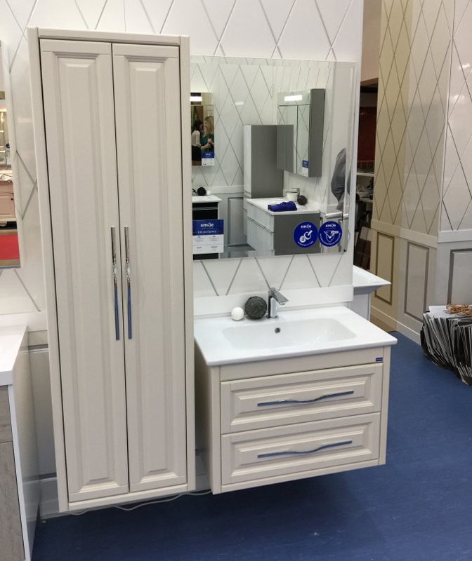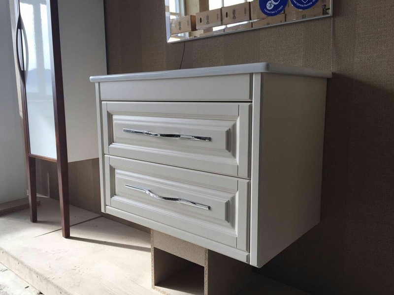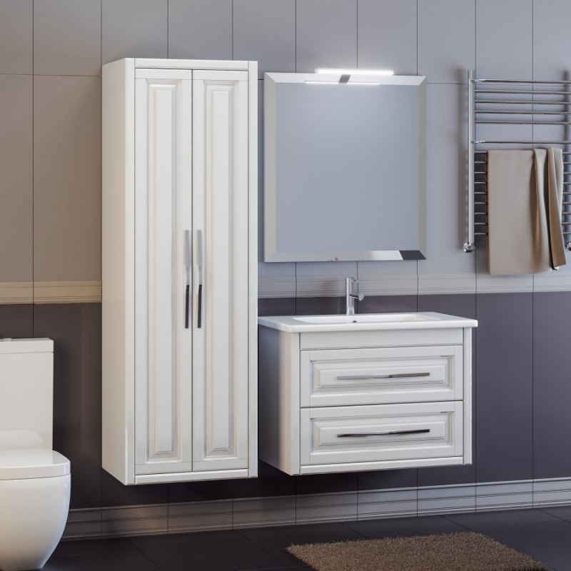 Модель со строгим дизайном с рамными фасадами и функциональной конструкцией прекрасно дополнит современный интерьер ванной комнаты.
