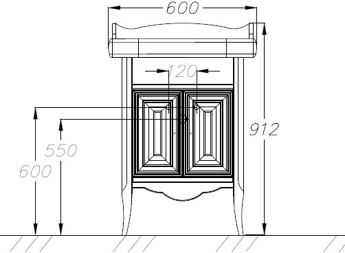 Выполнена в классическом стиле с плавными изогнутыми формами и изящными слегка гнутыми ножками. Фасадные элементы украшены резными узорами.