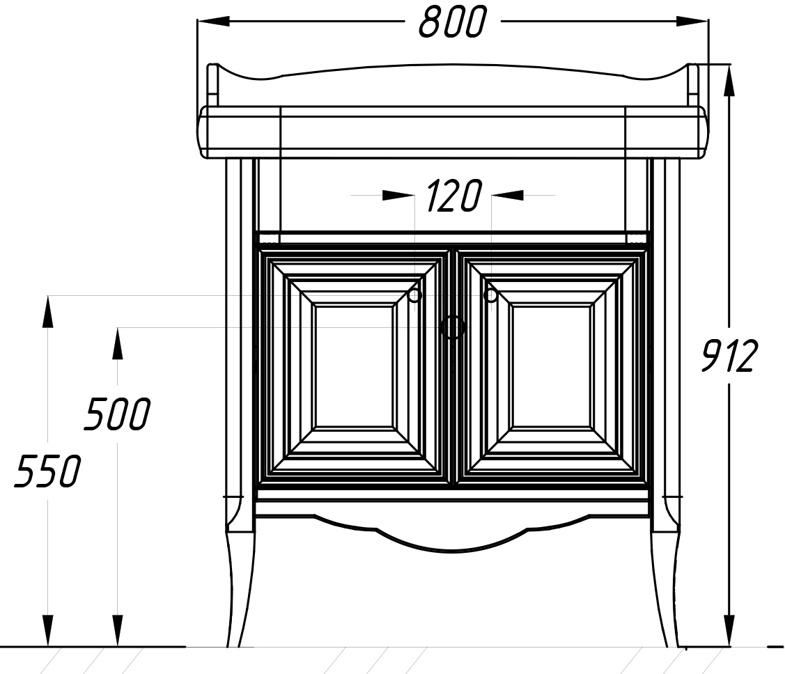 Выполнена в классическом стиле с плавными изогнутыми формами и изящными слегка гнутыми ножками. Фасадные элементы украшены резными узорами.