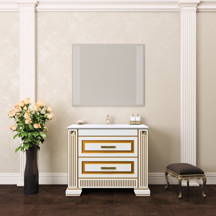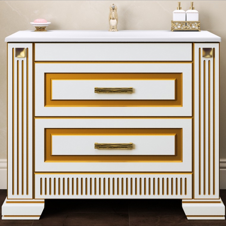 Тумба под раковину Opadiris Оникс 100 Z0000005640. Цвет: белый глянцевый с золотой патиной.
