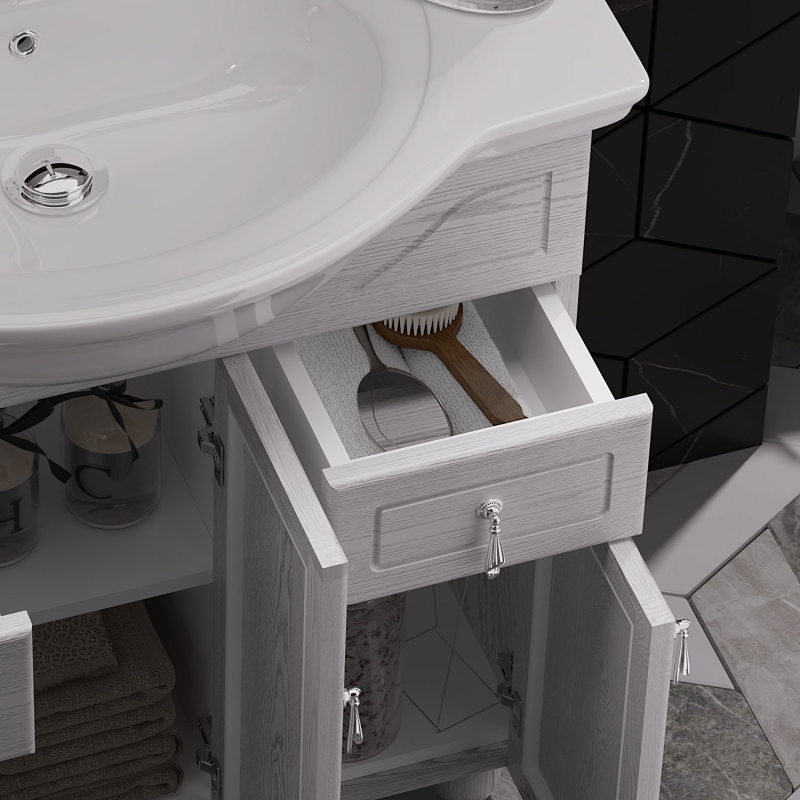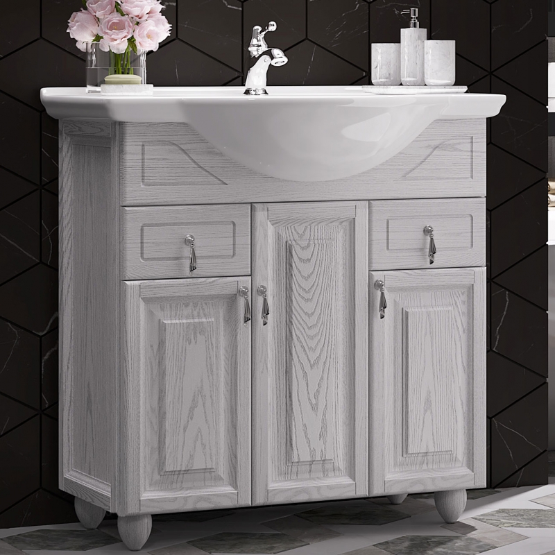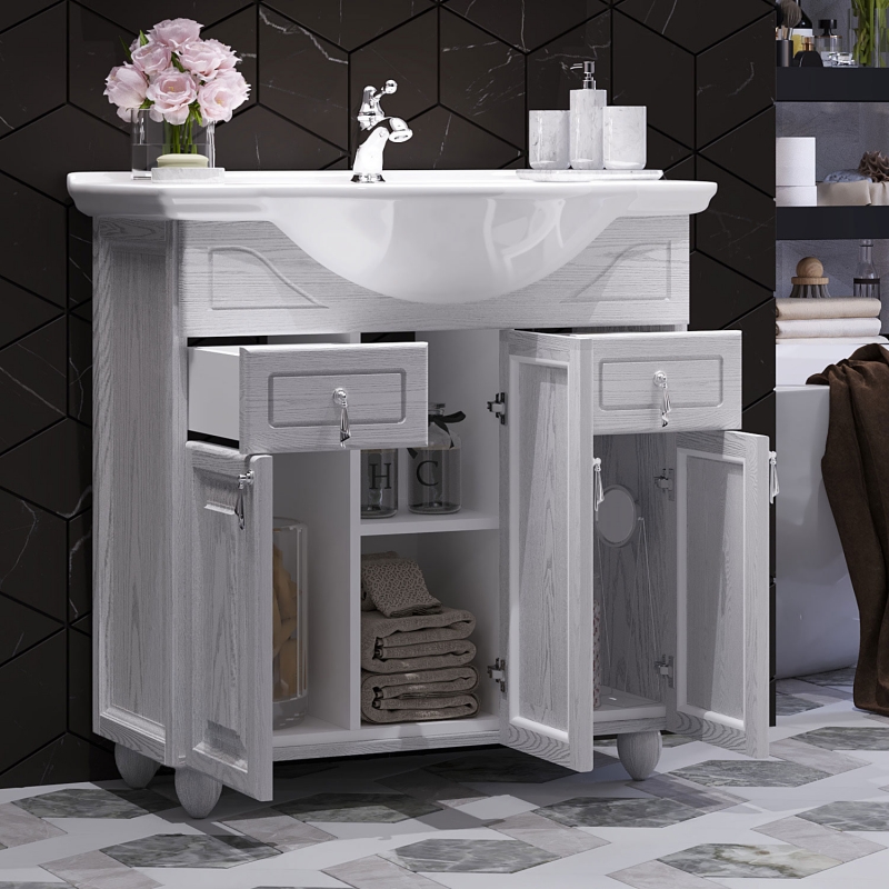 Тумба под раковину Opadiris Тибет 80 00-00002550 с объемной филенкой Ясень ручки Белое серебро