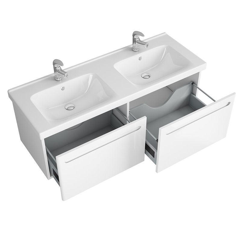 Минималистичный дизайн лаконично вписывается в интерьер современных ванных комнат. Два вместительных и глубоких ящиков позволят уместить все ванные принадлежности. Предназначена для использования в местах с повышенной влажностью. Конструкция соответствует стандартам безопасности. Тумба устойчива к бытовой химии. Проста и неприхотлива в уходе.