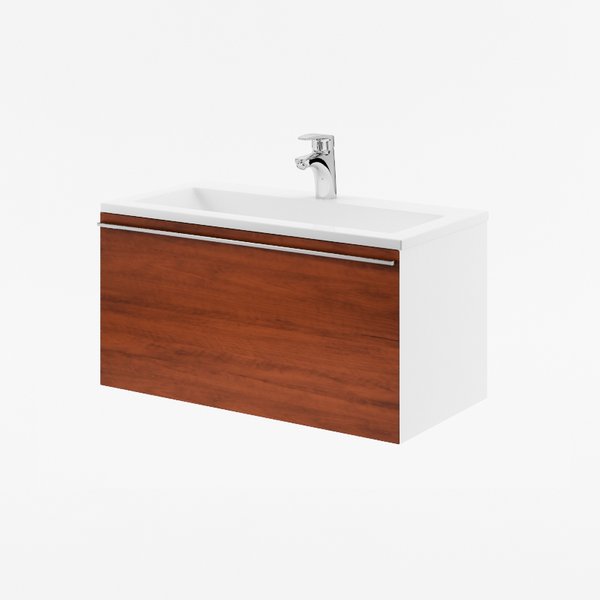 Тумба под раковину Ravak SD Clear 800 в современном стиле, подвесная, пристенная. Просторный выдвижной ящик для хранения. Цвет изделия - белый/вишня.