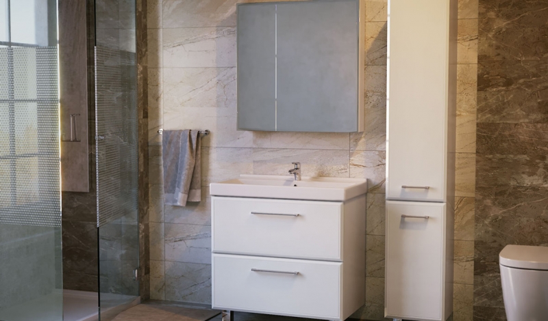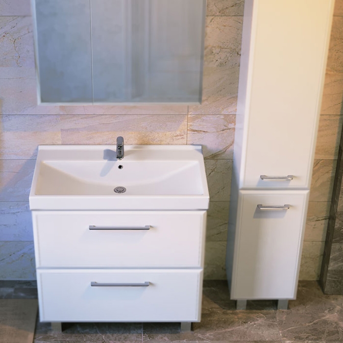 - Цвет тумбы: белый. Цвет фурнитуры: хром.