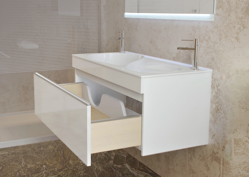 Подвесная тумба под двойную раковину Raval Hotte 100 Hot.01.100/P/W с глубоким выдвижным ящиком оснащенным направляющими с доводчиками. Удачное решение для размещения тумбы с двойной раковиной на небольшой площади без потери функциональности и удобства. Предназначена для использования в ванных комнатах с повышенной влажностью. Влагостойкие и экологичные материалы, качественная работа фурнитуры, ударопрочность, приятные тактильные ощущения.