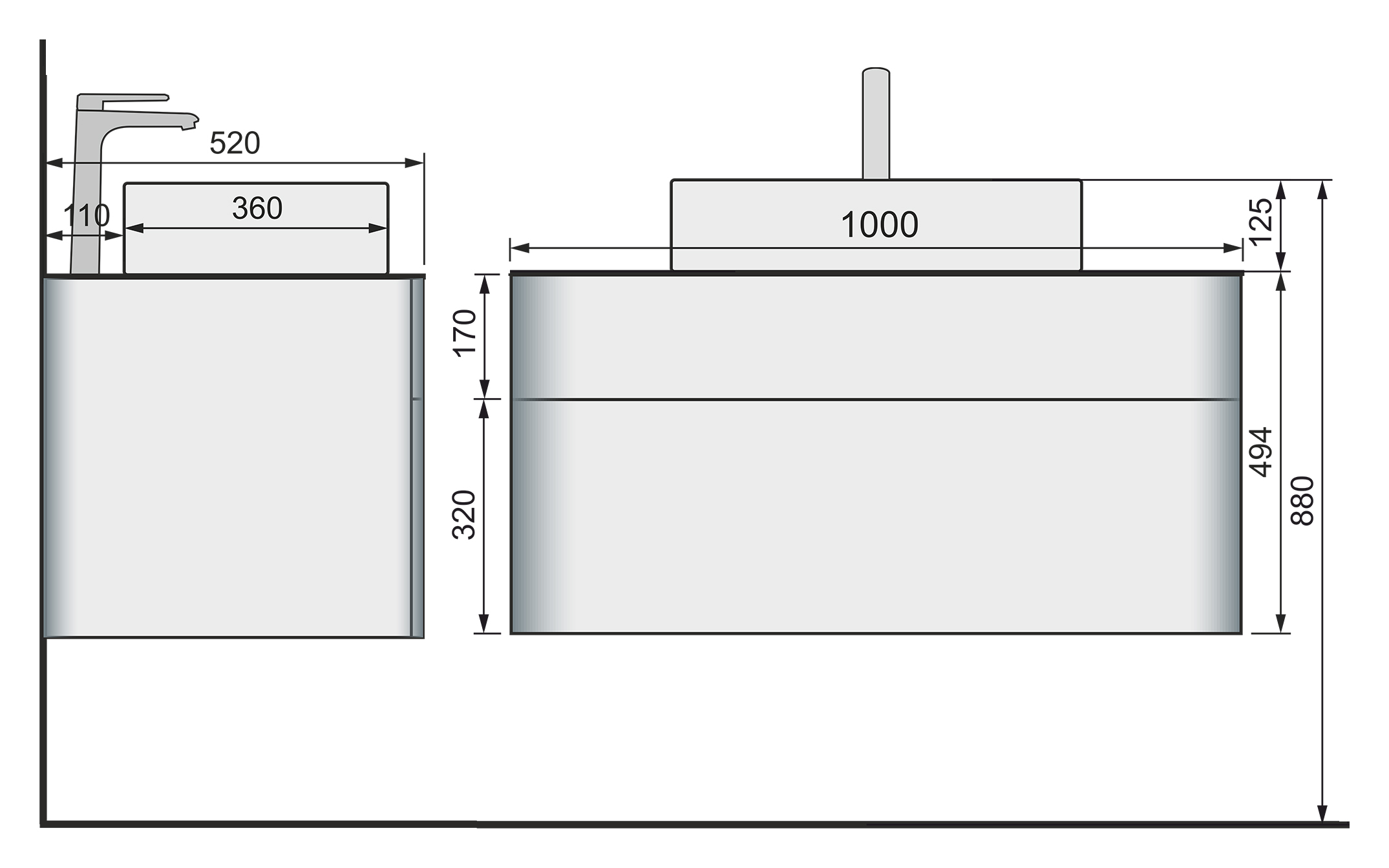 - Монтаж: подвесной, крепление к стене.