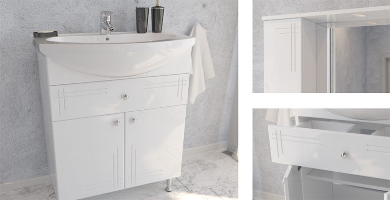 - Корпус выполнен из ЛДСП, фасад - из МДФ с покрытием пленкой ПВХ. Материалы устойчивы к влаге и перепадам температур.