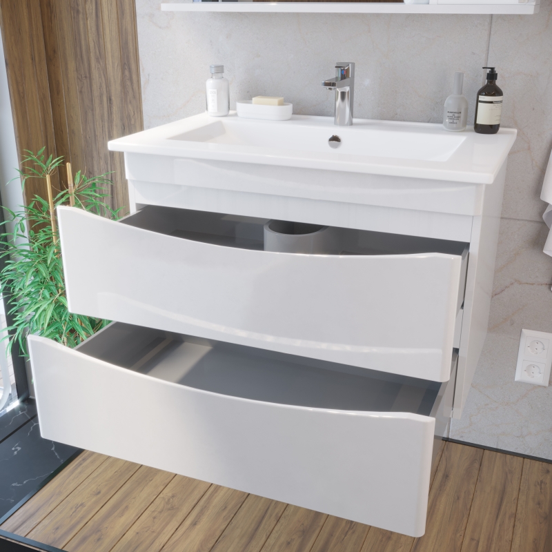Тумба под раковину San Star Smile 105 233.1-1.5.1. с двумя выдвижными ящиками - выполнена в современном стиле и дополнит большинство интерьеров ванных комнат.