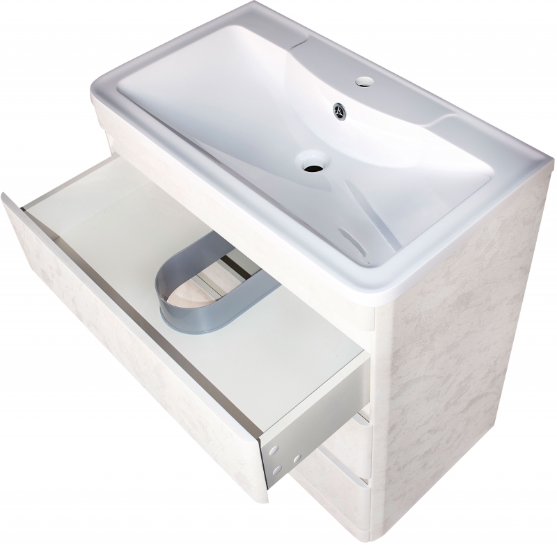 Тумба под раковину Style Line Атлантика Люкс Plus 80 СС-00002278 с тремя выдвижными ящиками. Отлично впишется в интерьер ванной комнаты в современном стиле. Ящики оснащены доводчиками для плавного закрывания.