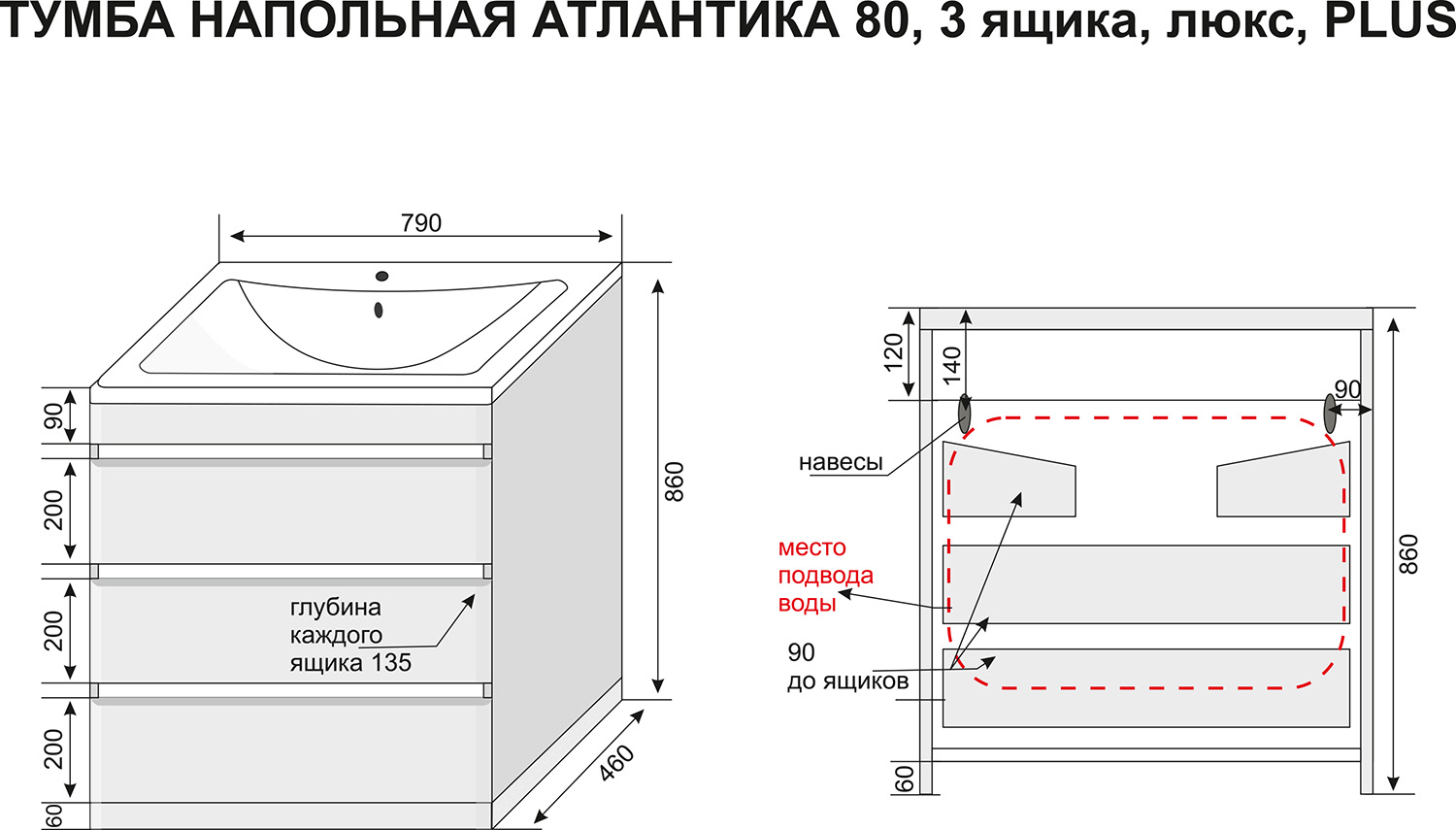 - Размеры тумбы (ШхГхВ): 79х46х86 см.