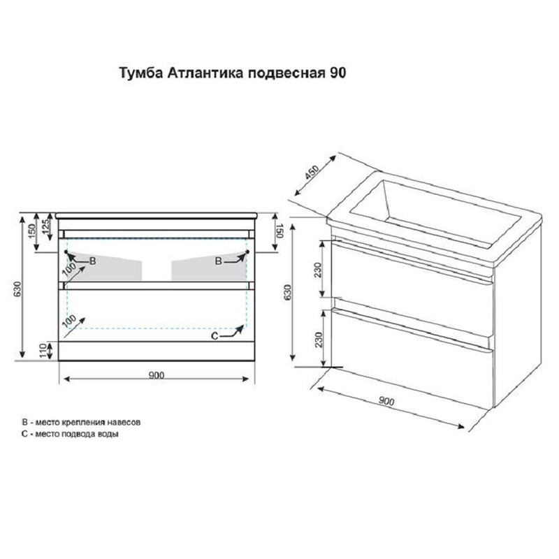 - Размеры тумбы (ШхГхВ): 90х42х60 см.