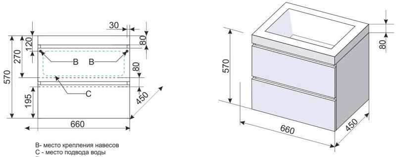 - Габариты корпуса тумбы (ШхВхГ): 66 х 57 х 45 см.