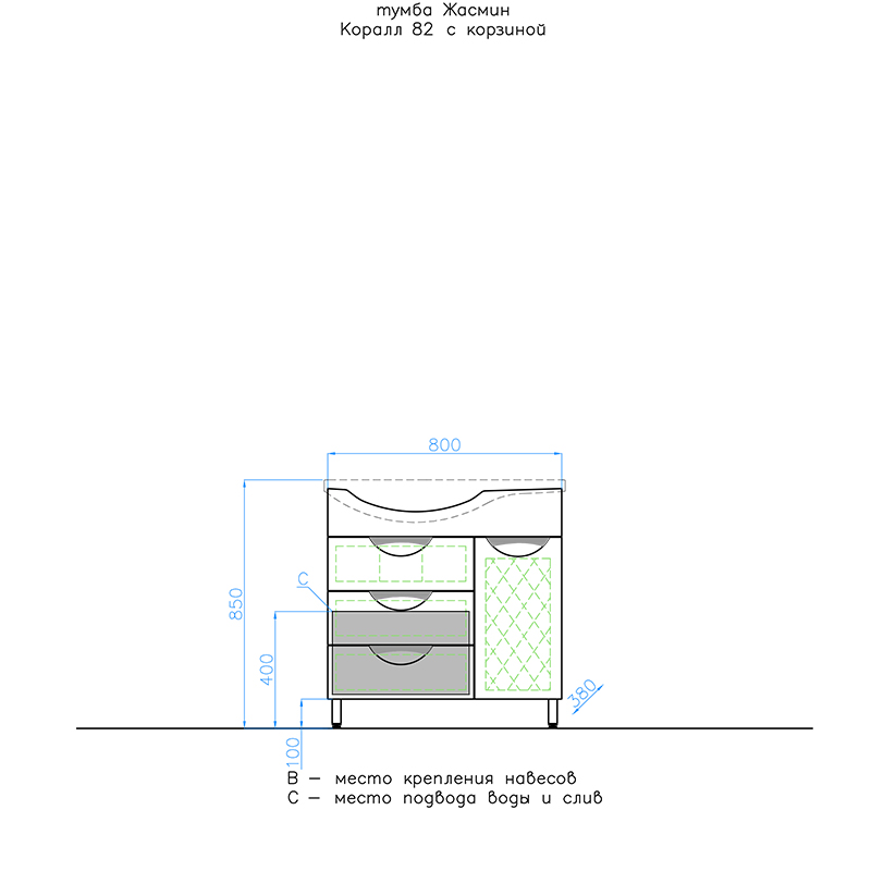 Технические характеристики:- Габариты тумбы: 80 x 38 x 85 см,