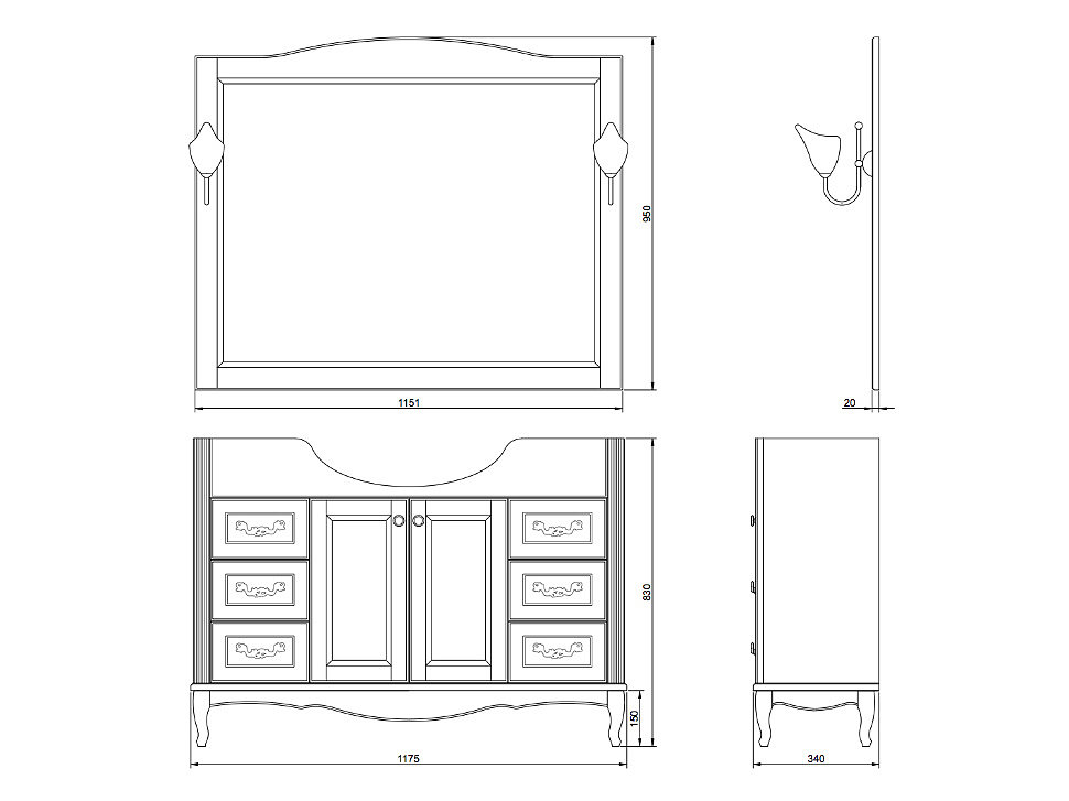- Габариты тумбы (ШГВ): 117.5x34x83 см.