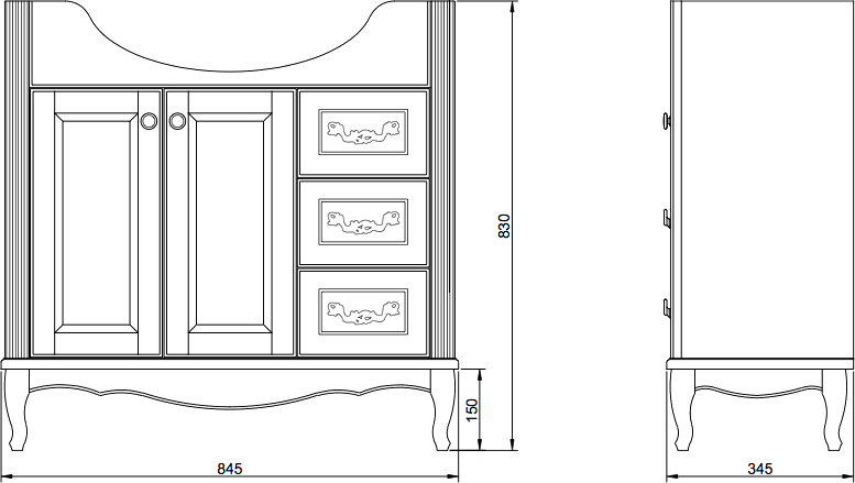 Напольная тумба под раковину ValenHouse Эллина 85 E85_ТКБ. Дизайн модели превосходно дополнит интерьеры ванных комнат, оформленных в различных стилях: классическом, барокко, кантри.