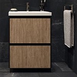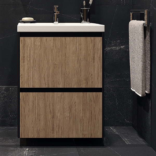 Тумба под раковину Velvex Klaufs 60.2Y tpKLA.60.2Y-617.217 в черном цвете с отделкой под дерево.