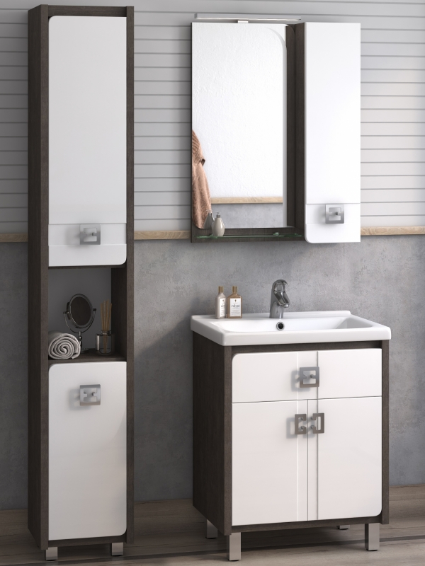 Лаконичная форма и удобная система хранения позволит с комфортом использовать тумбу в Вашей ванной комнате. Идеально подходит для интерьера в современном стиле.