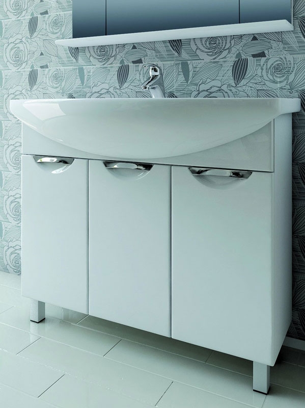Лаконичная форма и удобная система хранения позволит с комфортом использовать тумбу в Вашей ванной комнате. Идеально подходит для интерьера в современном стиле.