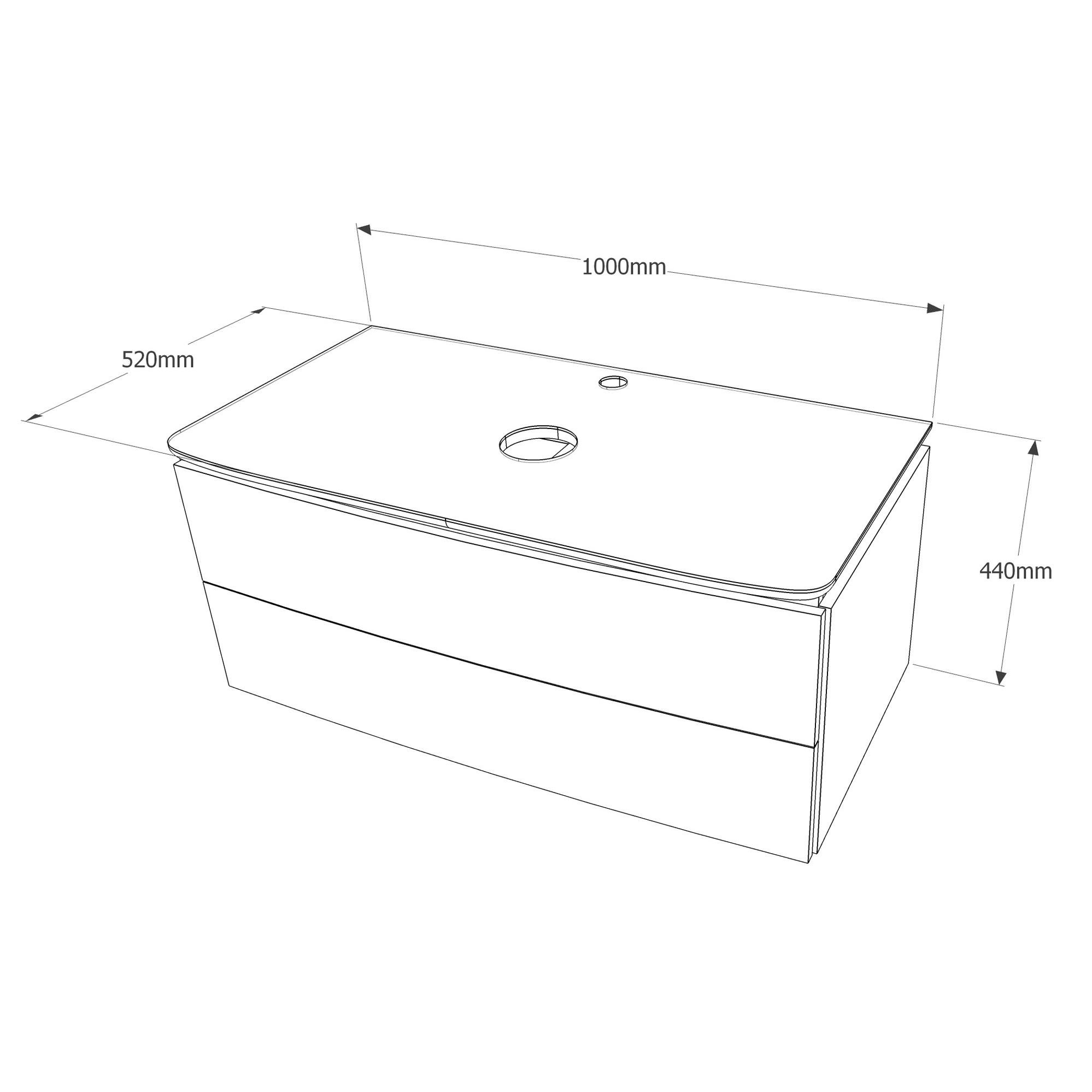 - Габариты корпуса тумбы (ШхГхВ): 100 x 52 x 44 см.