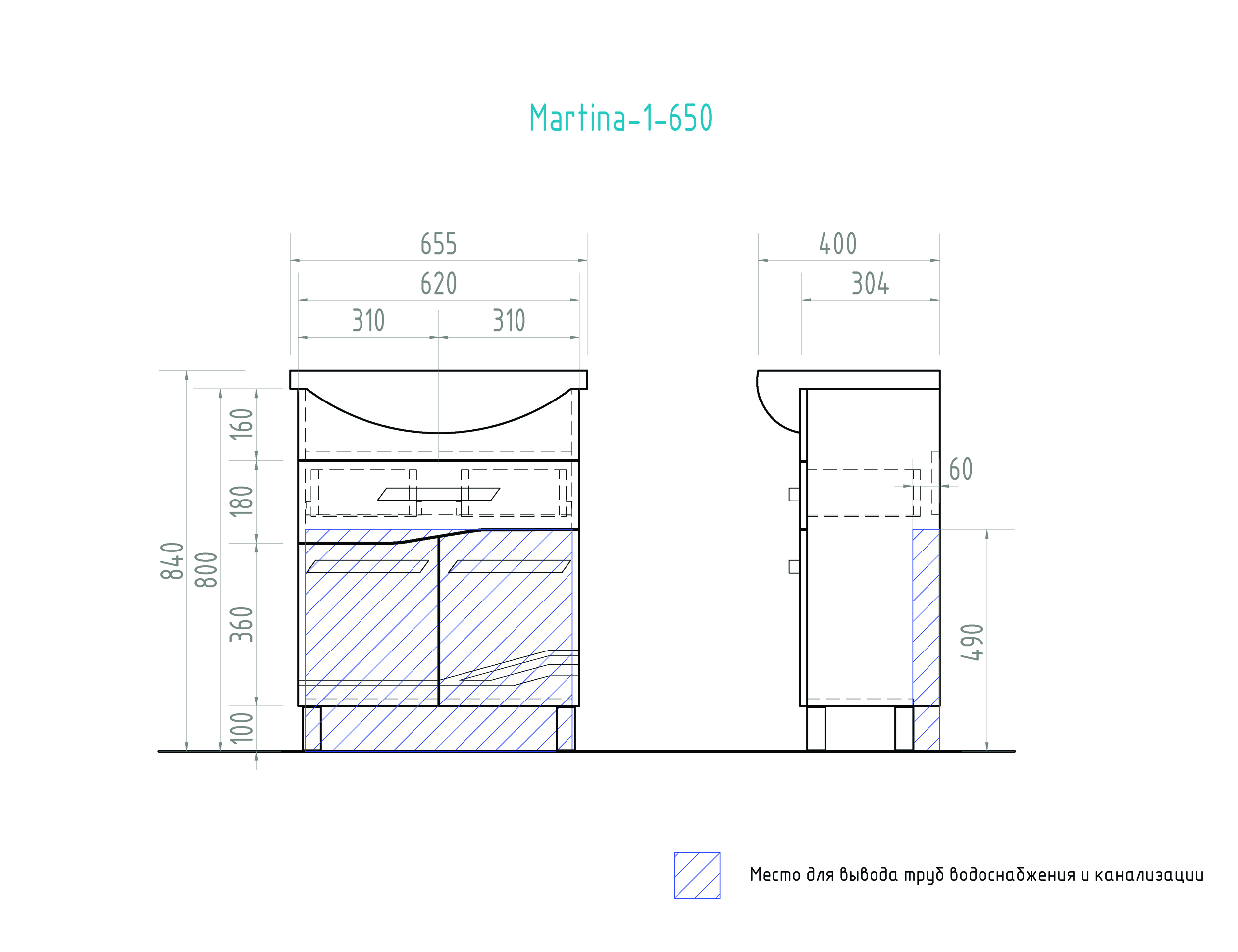 Тумба под раковину Vigo Martina шириной 65 см. Артикул: Martina-1-650(Стиль).